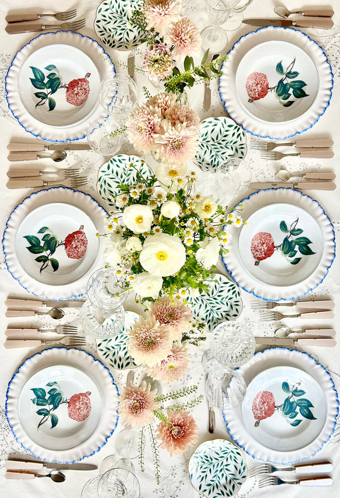 A sweet scalloped edge and hand-painted golden vines on Limoges Porcelain make this collection utterly timeless. Crafted by the oldest Porcelain maker in France, this collection is the perfect way to add a little warmth and sophistication to a perfectly set table. Pairs beautifully with the French chargers and Nouveau patterns.